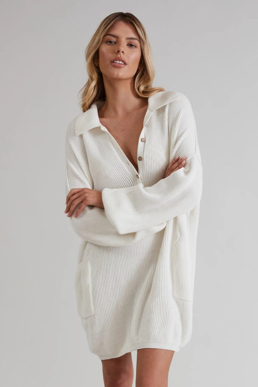 Inspired by classic beach style, the Florence Knit Mini Dress is the perfect cozy knit for those cool summer nights.